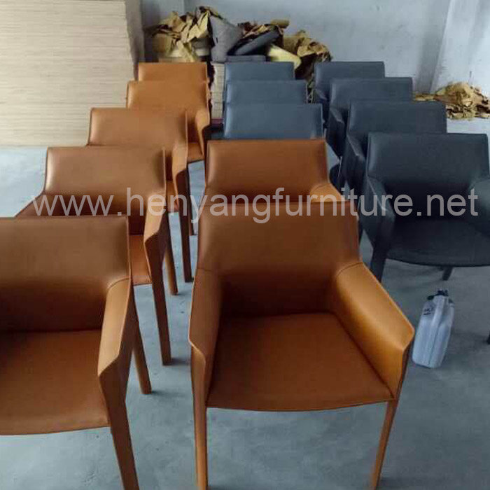 - 设计师极简硬皮马鞍皮餐椅实木环保皮革会议椅子样板房商务洽谈椅 [产品材质]:...