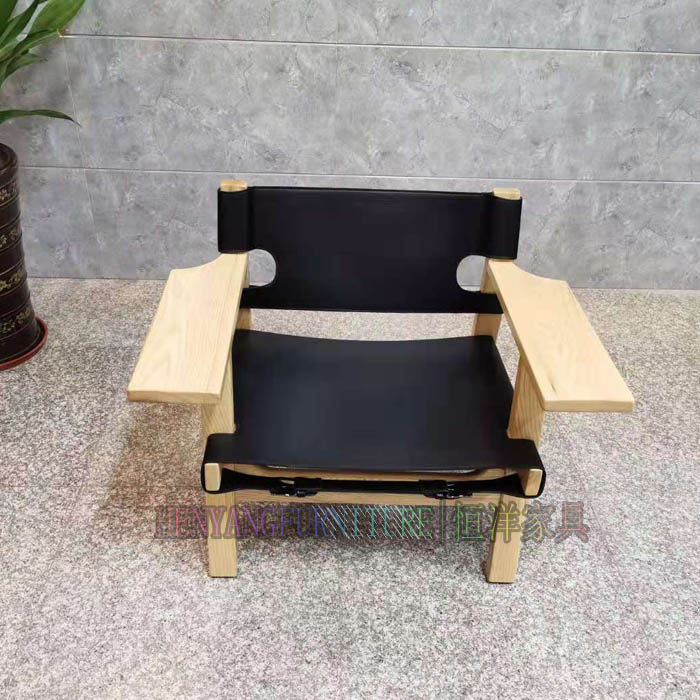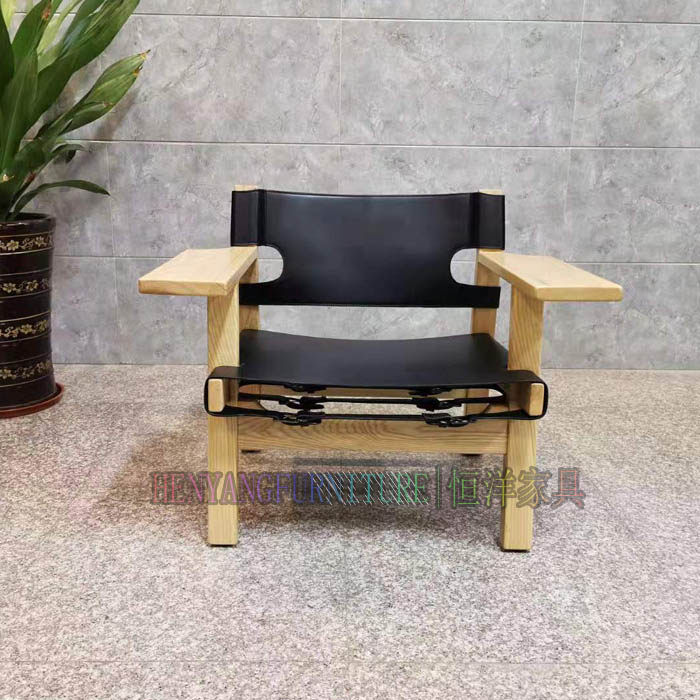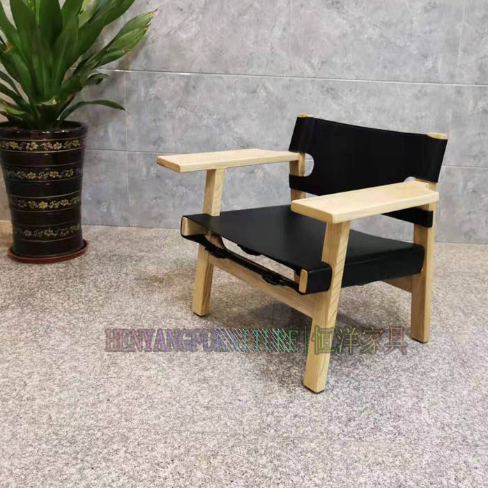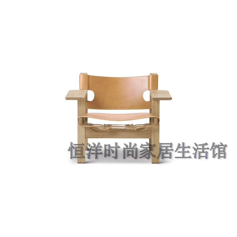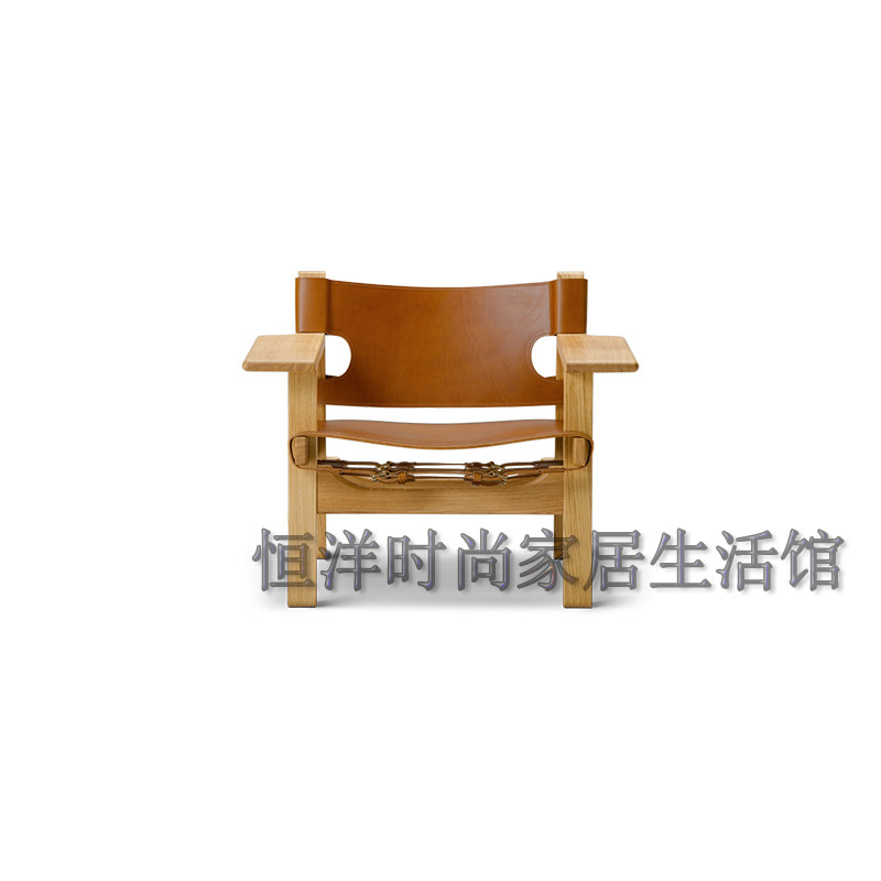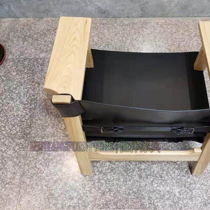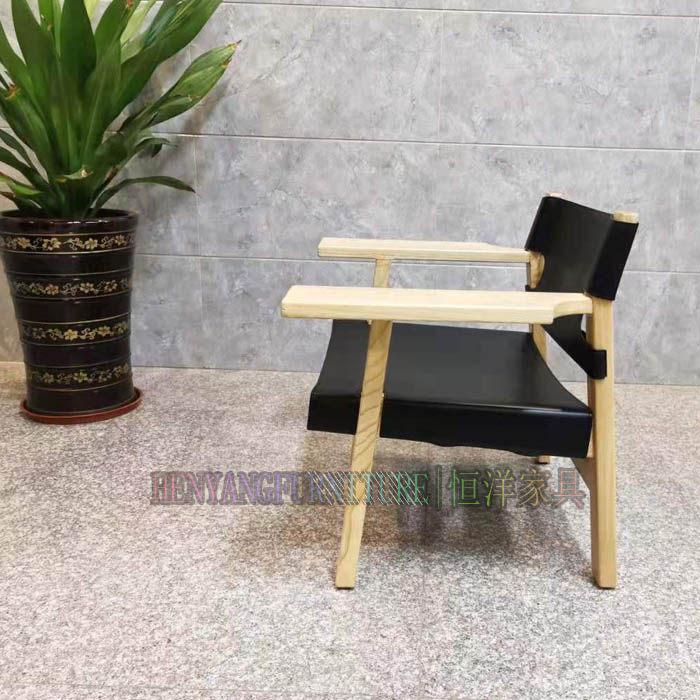 恒洋家具丨实木架硬皮椅设计师风格马鞍皮个性单椅 休闲区阅读椅