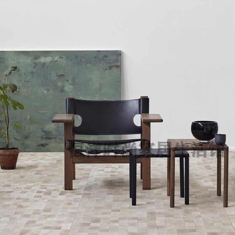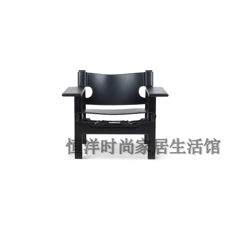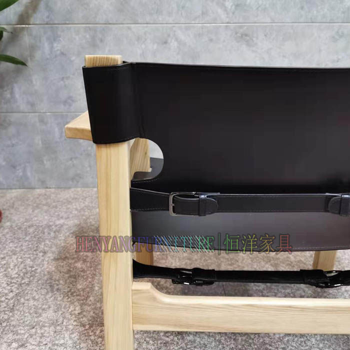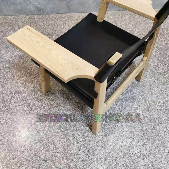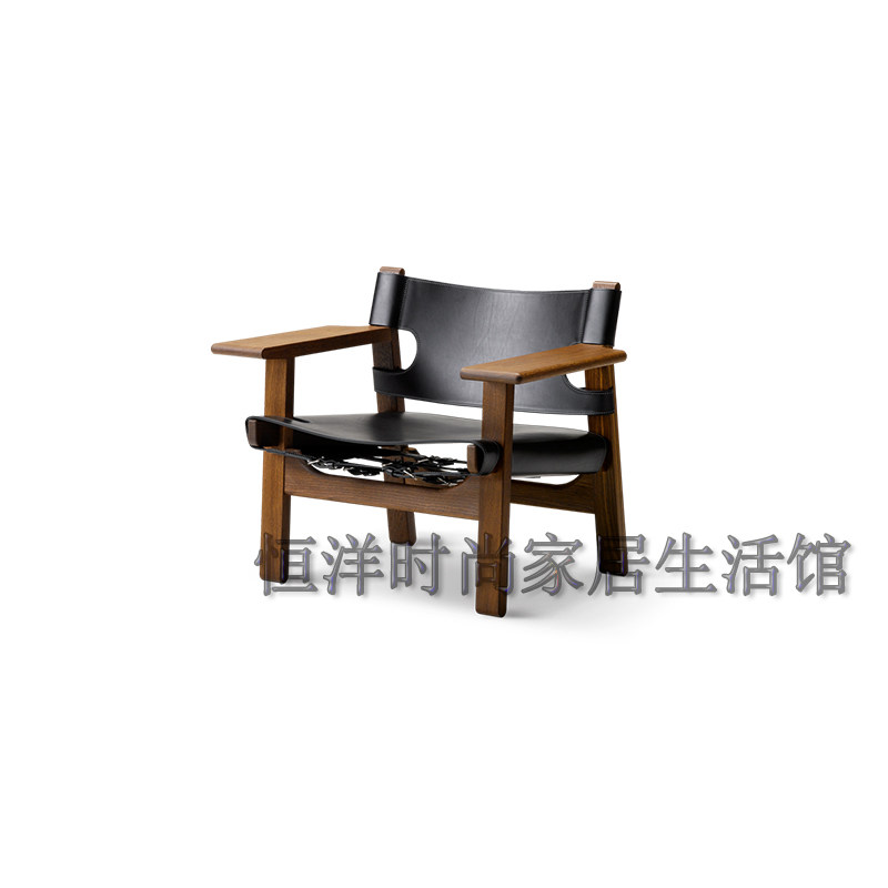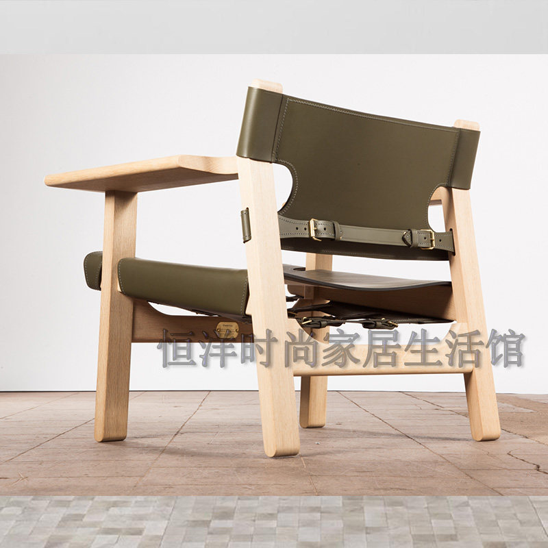 恒洋家具丨实木架硬皮椅设计师风格马鞍皮个性单椅 休闲区阅读椅